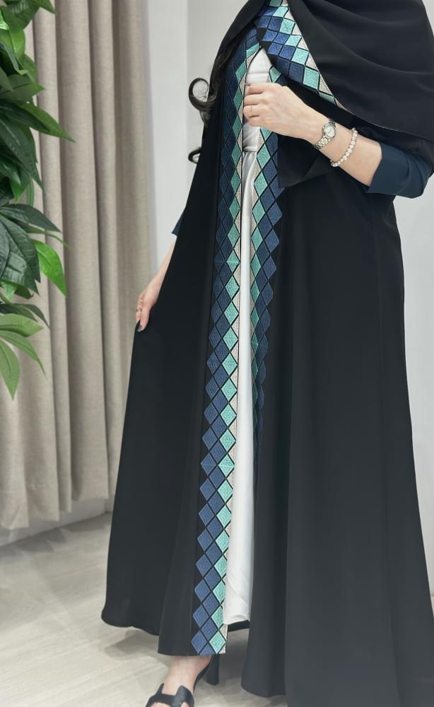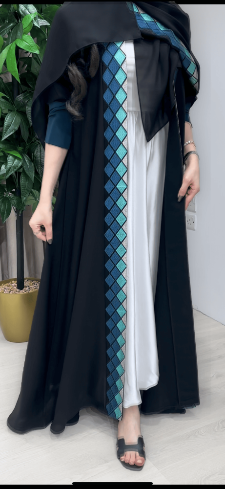 - تطريز أمامي أنيق: يمتد التطريز بشكل طولي على الجزء الأمامي من العباية، وهو متوفر بألوان مختلفة ليناسب ذوقكِ وشخصيتكِ. هذه اللمسة تضعها في قلب مجموعة العبايات المطرزة الفاخرة.